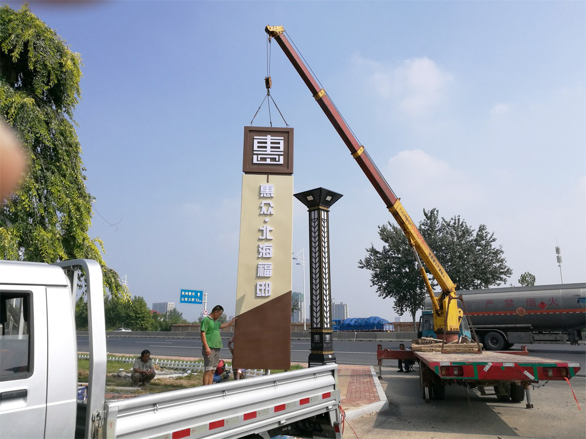制作工藝:內(nèi)置金屬結(jié)構(gòu)骨架,鍍鋅板鍛造成型,表面噴涂氟碳漆,logo及文字為發(fā)光字。