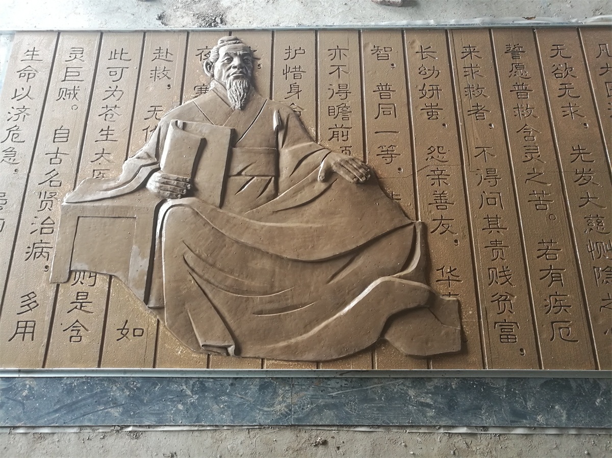 成品名稱:孫思邈玻璃鋼浮雕及風(fēng)景砂巖浮雕