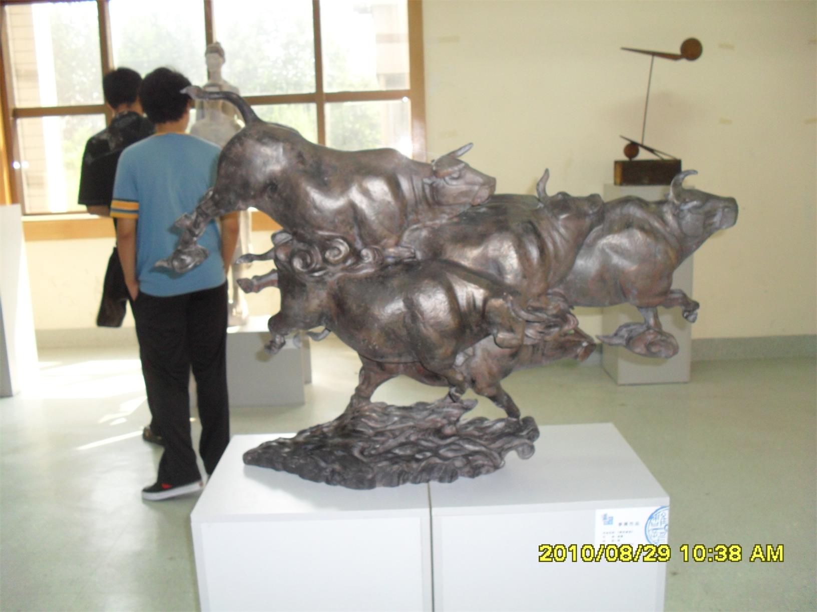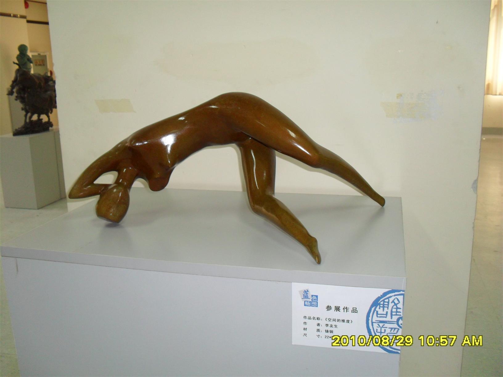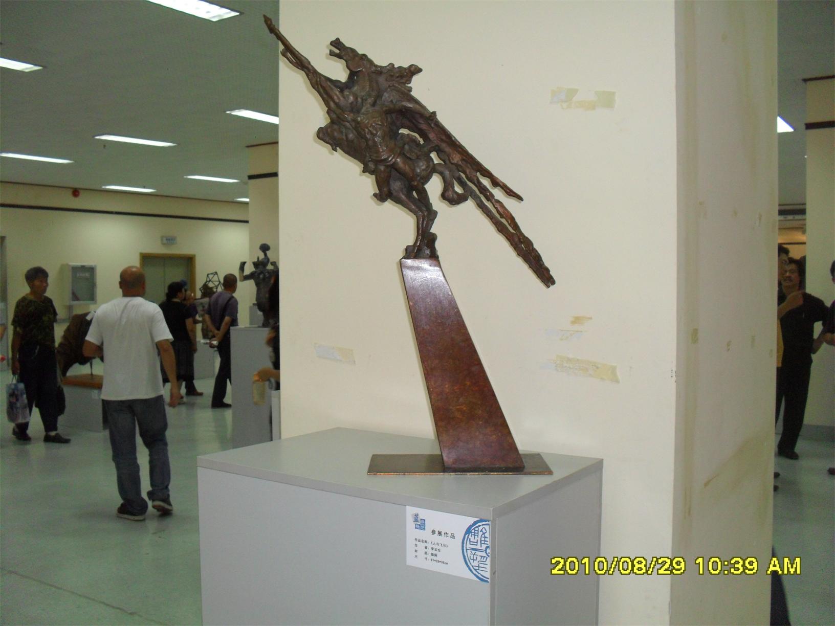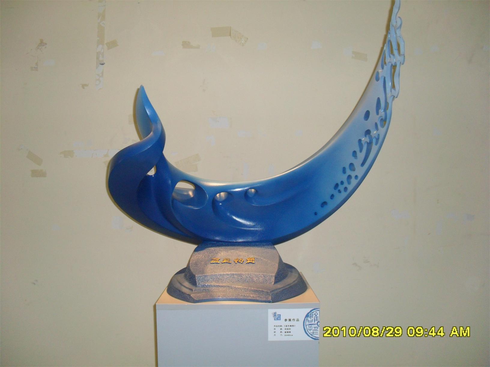 藍(lán)色暢想2010雕塑,2010年8月29日,由中共山東省委宣傳部、山東省文學(xué)藝術(shù)界聯(lián)合會(huì)主辦,山東省雕塑藝術(shù)家協(xié)會(huì)、青島雕塑家協(xié)會(huì)承辦的第三屆山東國(guó)際大眾藝術(shù)節(jié)--藍(lán)色暢想2010雕塑展在山東省圖書館隆重開幕。 "藍(lán)色暢想2010雕塑展"吸引了省內(nèi)外大批中青年雕塑家的參與,展覽共收到101位雕塑藝術(shù)家的126件入圍作品。其中省內(nèi)中青年雕塑藝術(shù)家占絕大多數(shù),圍繞"藍(lán)色"主題,堅(jiān)持創(chuàng)造、創(chuàng)新理念,創(chuàng)作了大批優(yōu)秀的雕塑藝術(shù)作品,語(yǔ)言生動(dòng),內(nèi)容多樣,借助不同材質(zhì)和多元化的藝術(shù)風(fēng)格,對(duì)藍(lán)色精神進(jìn)行了深入的闡釋。李友生的《海風(fēng)倩影》、王未的《藍(lán)色暢想》、譚信國(guó)的《蘋果系列》等作品,均對(duì)雕塑藝術(shù)內(nèi)涵進(jìn)行了深入的探索。